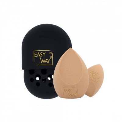 ايزي واي – طقم اسفنجات مكياج مكون من اسفنجة كنتور + اسفنجة دمج كريم الأساس مع حافظة اسفنجات