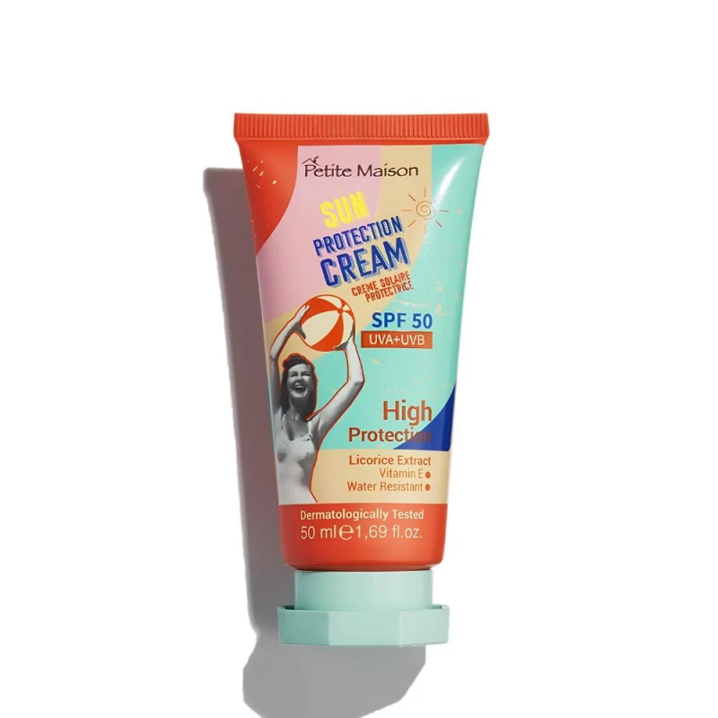 بيتيت ميزون – كريم واقي من الشمس بعامل حماية 50 درجة 50 مل يحمي بشرتك من الآثار الضارة للشمس ويساعد البشرة على التنفس بفضل تركيبته الخفيفة.