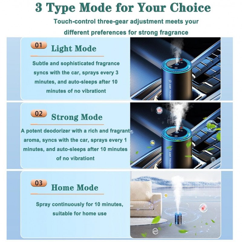 • أضف الطبيعة إلى سيارتك: تعمل تقنية الموجات فوق الصوتية بفعالية لإعطاء رذاذ عطري موحد فائق النعومة وسلس، وهو أسهل طريقة للحفاظ على بيئة منعشة وخالية من الرطوبة والروائح في سيارتك