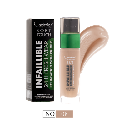 كريم أساس سوفت تاتش من كرستين يمنح البشرة مظهرا مشرقا وخاليا من العيوب مع ثبات يصل حتى أربع وعشرين ساعة يساعد على إخفاء عيوب البشرة وعلامات التعب فور التطبيق ويعزز إشراقة البشرة لمظهر صحي ومنتعش يمنح توهجا طبيعيا مريحا يجعل البشرة تبدو حيوية ومتجانسة قوامه الكريمي الذائب ينساب بسلاسة ويمتزج بسهولة مع البشرة ليبقى مريحا طوال اليوم يوفر تغطية كاملة تخفي المشاكل وعيوب البشرة بفعالية كريم أساس قابل للمزج بسهولة ويمنح ملمسا ناعما وكريميا أصباغ مثالية تناسب مختلف ألوان البشرة مع لمسة نهائية موحدة تركيبة طويلة الأمد مقاومة للحركة والظروف المحيطة ومقاومة للماء مثالي للاستخدام اليومي والمناسبات والحفلات يساعدك على الحصول على مكياج متقن وخال من العيوب الحجم 30 مل