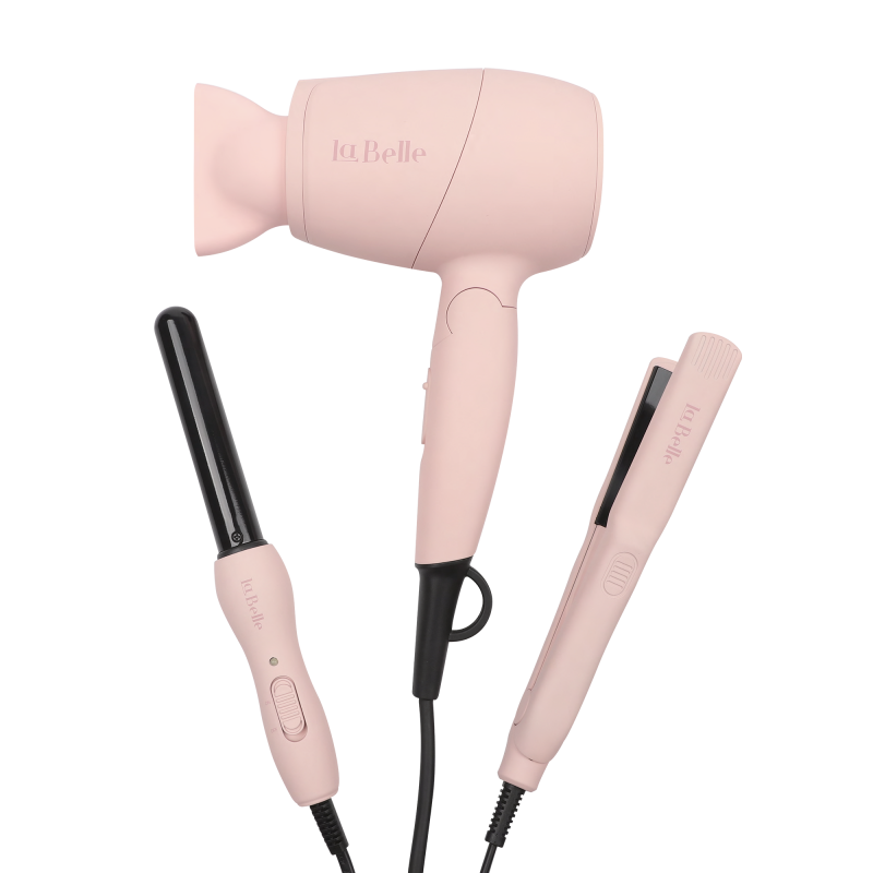 مجموعة العناية بالشعر من لابيل ميني   مكونة من ثلاث قطع احترافية صغيرة الحجم مناسبة للسفر أو حملها إلى أي مكان سوف تذهب إليه، وكل قطعة منها لها استخدام خاص
