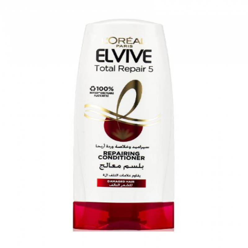 خمس مشاكل والحلّ واحد. يحتوي بلسم Elvive Total Repair 5 الكريم المعالج للشعر من لوريال باريس على البرو-كيراتين والسيراميد ليترك شعرك: 1- أقوى، 2- أكثر كثافة، 3- أكثر حيوية، 4 – حريري الملمس، 5- نابض بلمعان صحي.