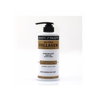 لوشن مرطب بالكولاجين وزبدة الشيا من سعادة بيوتي يترك البشرة ناعمة ومرنة، ويمنحها ترطيبًا يدوم طويلاً مع تحسين مرونتها وشكلها الصحي.