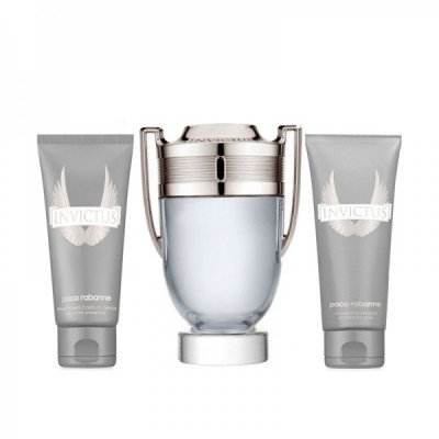 مجموعة هدايا كولونيا إنفيكتوس من باكو رابان عبارة عن مجموعة فاخرة تتضمن ثلاثة قطع، وتتميز بالفخامة والجاذبية. إليك وصفًا لهذه المجموعة الرائعة: