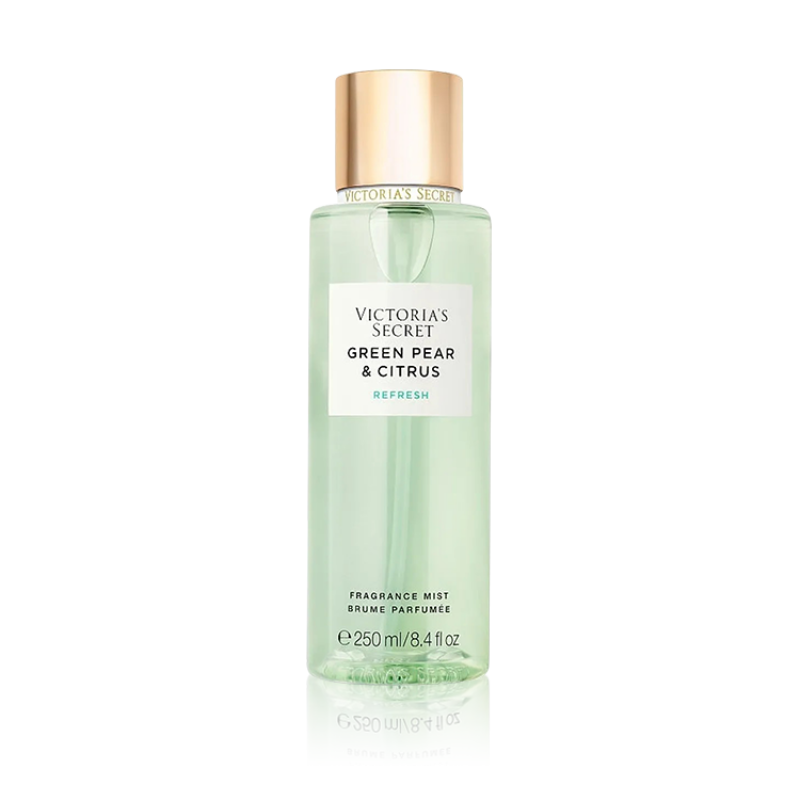 • معطر جسم  جرين بير اند سيتروس ريفريش من فيكتوريا سيكريت مزيج من رائحة الكمثرى، الحمضيات.